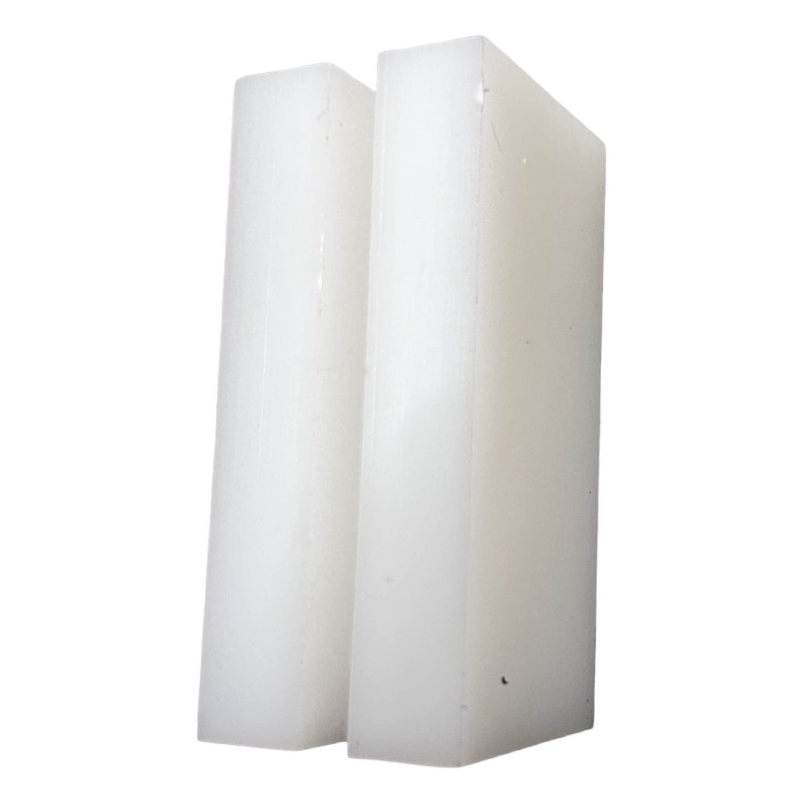 SLOTTED white rectangle slider block, HAS A SLOT DOWN THE MIDDLE OF THE BLOCK making a u shape