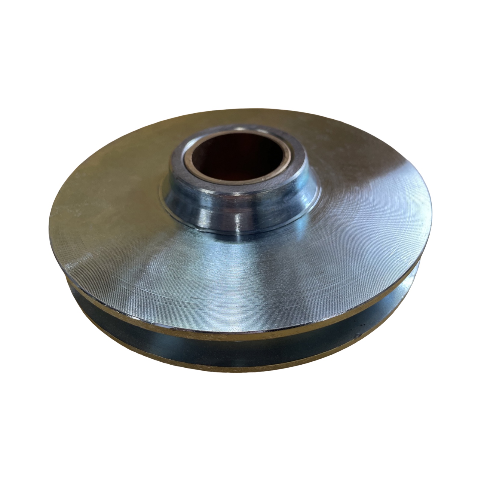 This steel sheave is 6-1/8″ in diameter and has a 1-3/8 “center bore and is designed for 1/2” wire rope.