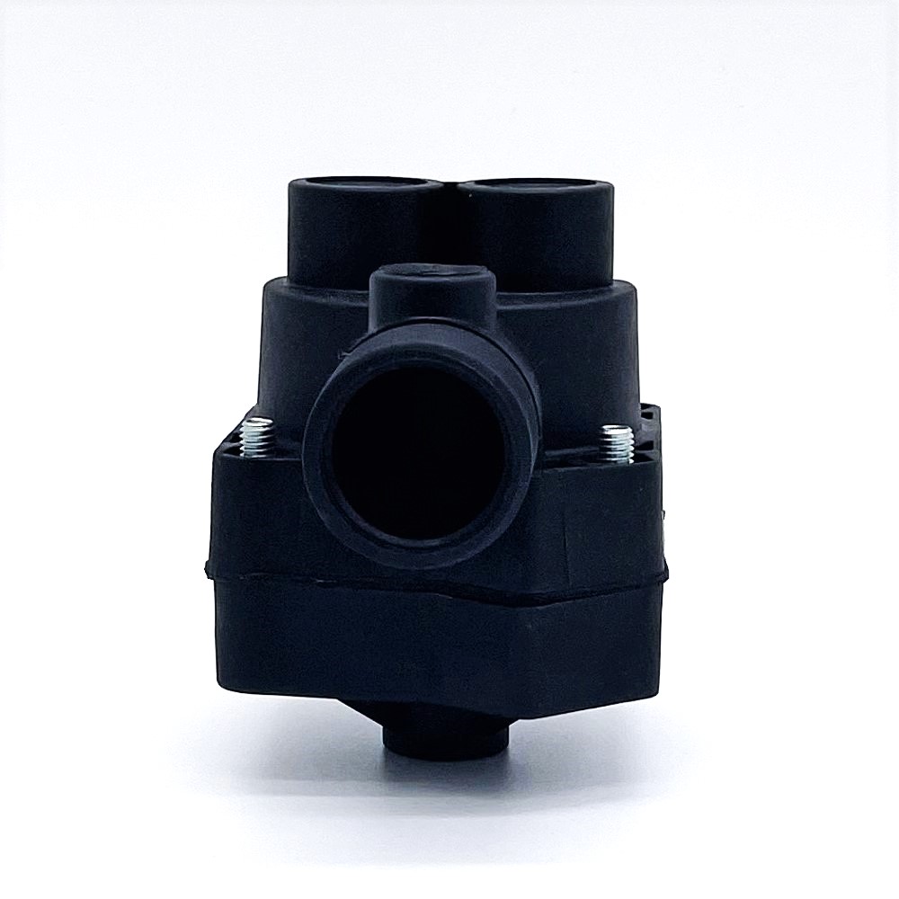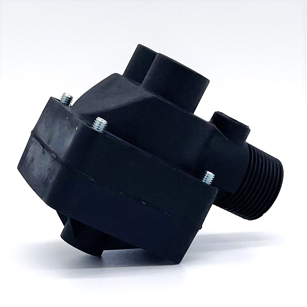 Includes fittings on top threaded ports to quick connect the large plastic hoses to