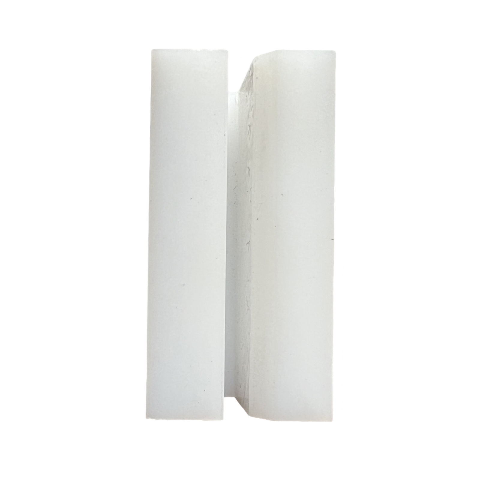 SLOTTED white rectangle slider block, HAS A SLOT DOWN THE MIDDLE OF THE BLOCK making a u shape